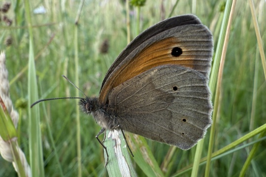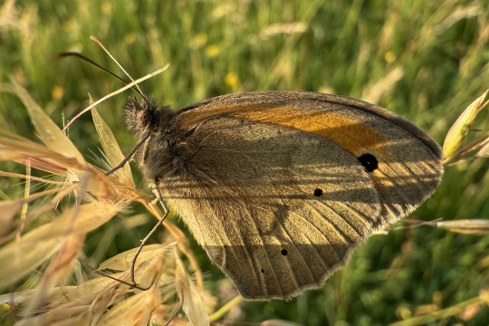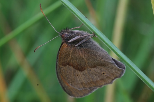 Lebensweise Trotz der recht langen Flugzeit von Juni bis August fliegen die Falter in nur einer lang gestreckten Generation. Das Weibchen legt seine Eier meistens frei auf den Boden oder an grüne oder verdorrte Gräser. Die verborgen lebenden Raupen verpuppen sich in einer hellen gelbgrünen, zart schwarzbraun gezeichneten Stürzpuppe, die mit dem Kopf nach unten an trockene Stängel hängt. Die Männchen schlüpfen stets deutlich früher als die Weibchen. Charakteristisch für das Große Ochsenauge ist auch sein langsam schwerfälliger bis sprunghafter Flug.