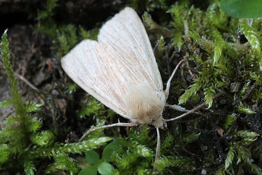 Aussehen Die Falter haben gelblich-ockerfarbene Vorderflügel mit deutlich hervortretenden, hellen Adern sowie meist zwei kleinen schwarzen Punkten auf den Flügeln. Die Hinterflügel sind überwiegend weiß und zeigen in der Mitte gelegentlich eine graue Tönung. Die Farbtöne wirken insgesamt blass und zart, ohne markante dunkle Zeichnung.