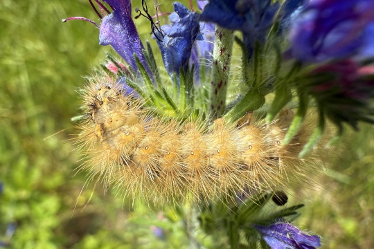 Raupe Die braunen Raupen besitzen Büschel rostroter bis gelbbrauner Haare. Unter den Haaren ist am Rücken ein heller Längsstreifen schwer zu erkennen.