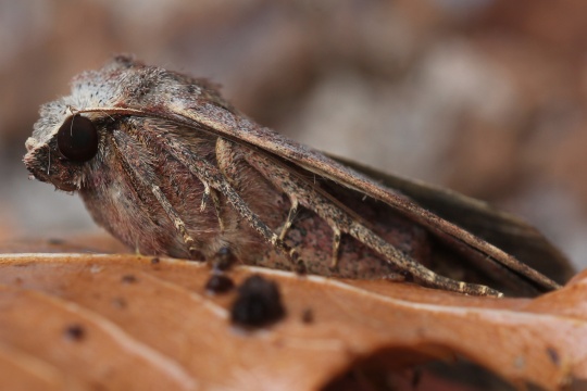 Aussehen Die Vorderflügel sind farblich variabel, meist rotbraun bis hellgraubraun oder ockergrau, mitunter auch grau-gelblich oder mit schwachem violettem Schimmer. Es sind typischerweise je zwei dunkle Punkte nahe dem Flügelvorderrand vorhanden, sowie schwach gezeichnete Querlinien, Ring- und Nierenflecken. Die Hinterflügel sind heller, oft bräunlich-grau mit einer diskreten Mittelfleckzeichnung.