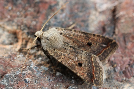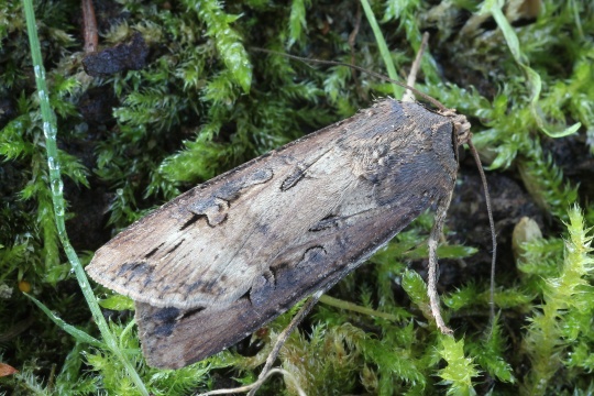 Die Falter haben bräunlich-gelbliche Vorderflügel mit zwei gezackten Querlinien und dunklen Punkten am Rand, die Hinterflügel sind heller und leicht durchscheinend. Sie findet man auf trockenen bis frischen Grasflächen, Wiesen und Waldrändern, auch auf sandigem Boden und in lichten Graslohflächen. Die Raupen leben in seidenen Röhren am Boden und ernähren sich von Gräsern wie Schafschwingel und Poa-Arten.