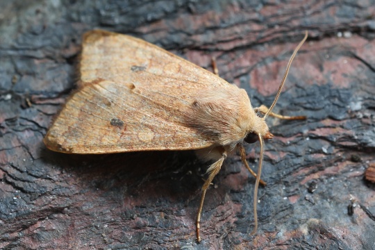 Der Falter zeigt dezente hellbraune Vorderflügel und helle Hinterflügel, während die Raupen durch ihre beinlose, schneckenartige Gestalt auffallen. Er lebt bevorzugt in alten Laubwäldern und lichten Waldrändern. Die Raupen ernähren sich von den Blättern verschiedener Laubbäume wie Eiche, Buche und Ahorn.