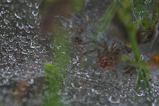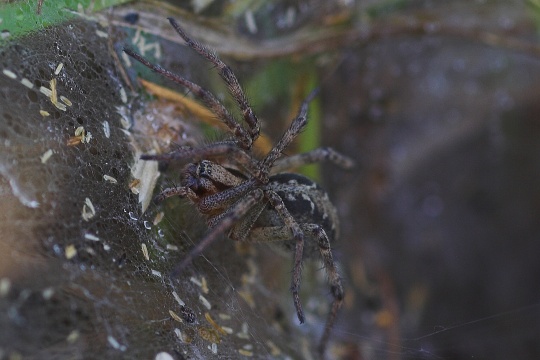 Lebensweise Die Labyrinthspinne baut große bis 50 cm breite Trichternetzte direkt über dem Boden. Ihre Lauerstellung befindet sich am Eingang der Wohnröhre. Vorbeikommende Beute wird blitzschnell überwältigt. Bei Erschütterungen entfernt sie sich sehr schnell durch die hintere Öffnung der Röhre. Sie ist im Hochsommer erwachsen und befestigt den ziemlich großen Eikokon im Juli/August im Inneren der Wohnröhre. Eier und Jungspinnen überwintern im Kokon, die Jungtiere verlassen erst im nächsten Frühjahr das Nest.