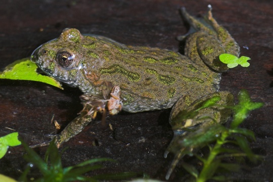 Die Rotbauchunke ist kleiner und schlanker als ihre Schwesternart die Gelbbauchunke (Bombina variegata).