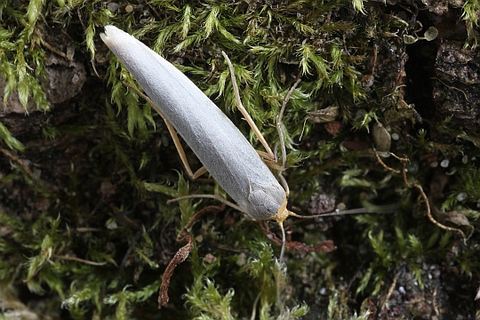 Aussehen Die Vorderflügel sind silbrig-weiß bis weißgrau gefärbt, der Flügelrand zeigt einen schmalen, blassgelben Streifen, der nicht stark kontrastiert. Es gibt oft einen leichten Seidenglanz auf den Oberseiten der Flügel. Die Hinterflügel sind hell (weiß bis hellgrau) und wirken etwas heller als die Vorderflügel. Der Kopf und der Halskragen weisen häufig eine gelbliche Tönung auf. Die Raupen sind behaart, meist graubraun oder grau mit dunkleren Punktreihen und warzigen Vorsprüngen.