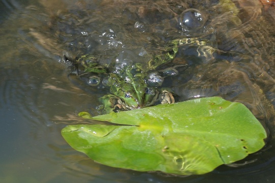 beim Freßvorgang drücken Frosch die Augen zu, um das Schlucken der Beute zu erleichtern