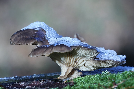 , dunkelbraun bei Feuchtigkeit und blass bei Trockenheit, mit gelegentlichen Veilstücken. Der Pilz besiedelt feuchtes Totholz in schattigen Wäldern, meist an Stümpfen und Ästen. Er gilt als essbar, doch aufgrund seiner fragilen Struktur und Verwechslungsgefahr kaum praktisch nutzbar.
