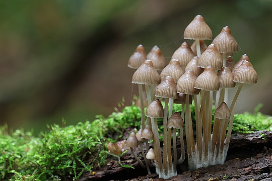 Die glatte Hutoberfläche dieses Helmlings ist matt und radialfaserig. Der Rand ist etwas gerieft und heller. Der Pilz ist rosabräunlich-ockerfarben gefärbt und besitzt eine glockig-kegelig bis halbkugelig Form. Er kommt von Frühling bis Herbst büschelig auf Totholz in Mischwäldern vor. Oft ist er an feuchten Stellen und Buchenstämmen zu finden.